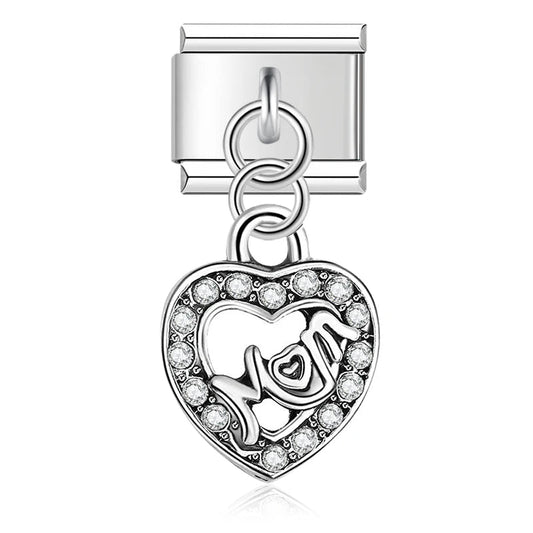 Silver Heart Mom Dangle